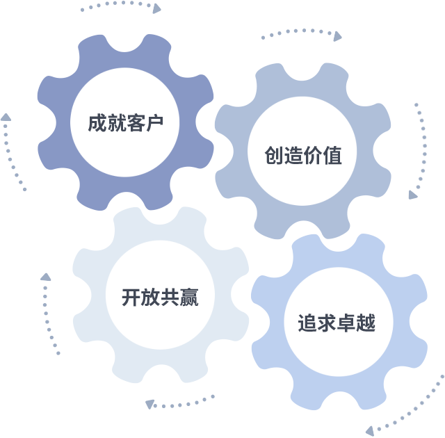 成就客户是一切决策的出发点,创造价值是衡量所有工作的标准,追求卓越是尊龙集团做事做人的态度,开放共赢是尊龙集团的格局也是最终的结果。价值观的齿轮环环相扣,推动着组织里的每个人不断向前。